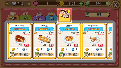 -프리미엄 레시피는 기본 빵보다 생산시간이 20% 짧습니다.