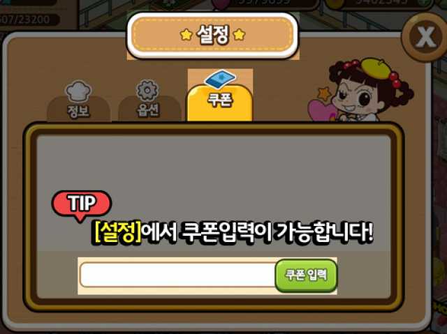 1. 게임내 [설정] ▶[쿠폰] 탭 선택