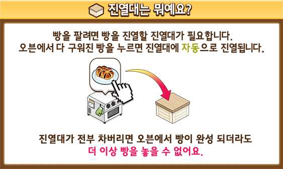 다 만들어진 빵은 진열대에 올려서 팔 수 있어요!