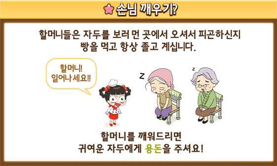 ☞ 할머니(손님)가 오랜시간 의자에 앉아계세요: https://game.nanoo.so/jadoobakery/faq/281?page=1