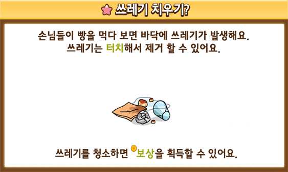 ☞ 빵집 바닥에 자꾸 쓰레기가 생겨요 : https://game.nanoo.so/jadoobakery/faq/276?page=1