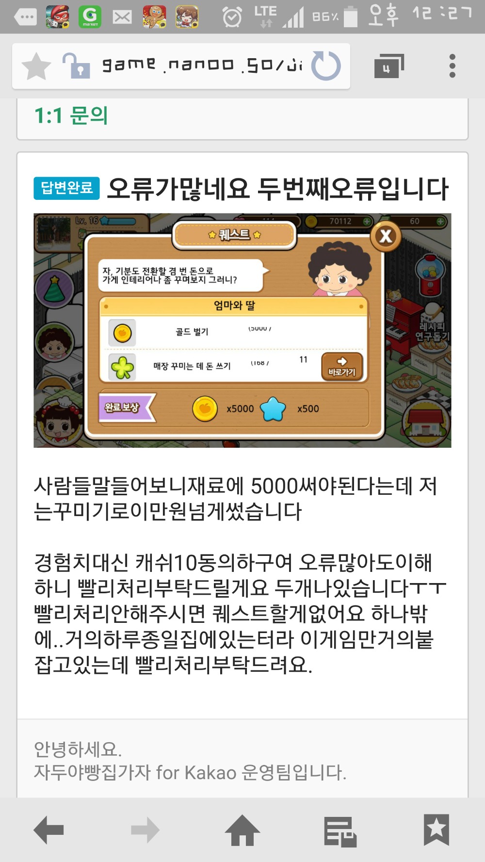 첫번째오류처리되고 두번째오류가있었는데 이때도 복붙에 글 제대로안읽어서 다시번거롭게올리고또기다렸는데 경험치대신 캐쉬동의한다카니까ㅋㅋㄱㅋㄱㅋㄱㅋㄱ첫번째오류로잡고늘고계시네 두번째오류라고요 왜글을자꾸않읽어요?진짜처리도늦은데 이렇게시간때우고있자니 게임안만들어보신것도아니고 항만더이러면 접음ㅇㅇ