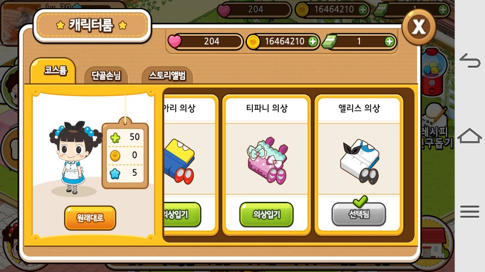 30만골드로뽑앗던 파티쉐의상이후 이벤트캐쉬5개로 엘리스의상 득템 ㅎ