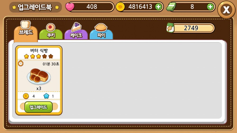 빵이 업그레이드 되질 않네요ㅠㅠ
