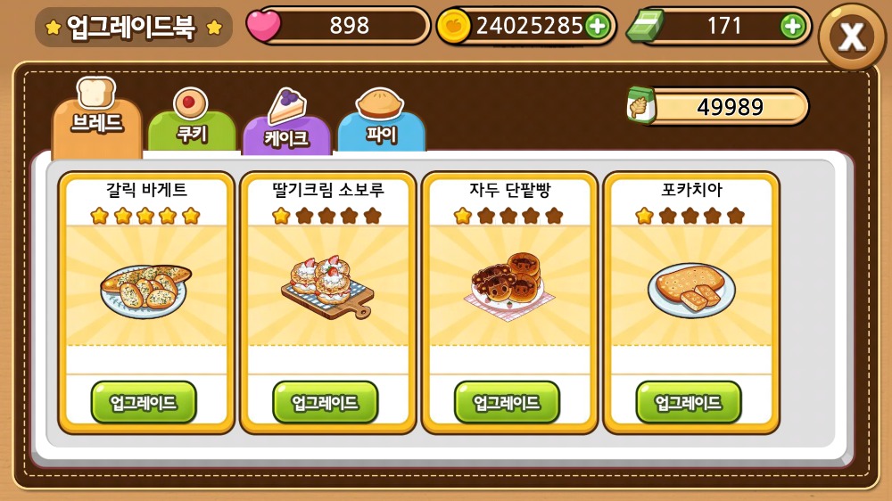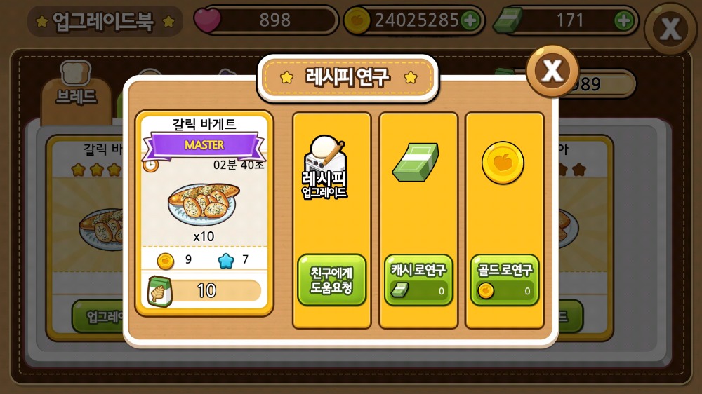 갈릭 바게트 이미 마스터 했는데 업그레이드북에 계속 뜨네요 데이터 지우고 게임삭제 했는데도 똑같아요;